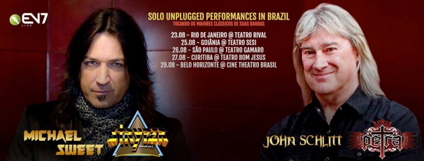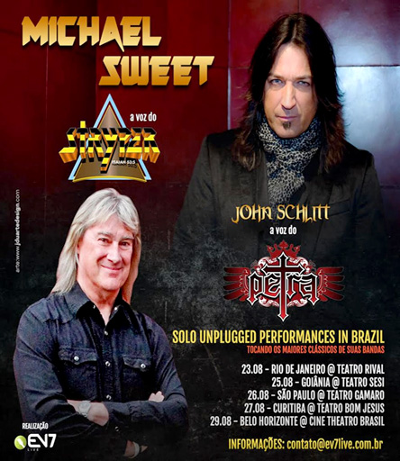 Duas das vozes mais marcantes da história do Rock cristão virão ao Brasil no segundo semestre para uma série de shows acústicos. Os cantores John Schlitt (Petra) e Michael Sweet (Stryper, Boston) tem cinco shows agendados no país entre 23 e 29 de agosto. Os repertórios de ambos serão baseados nos grandes sucessos de suas bandas.