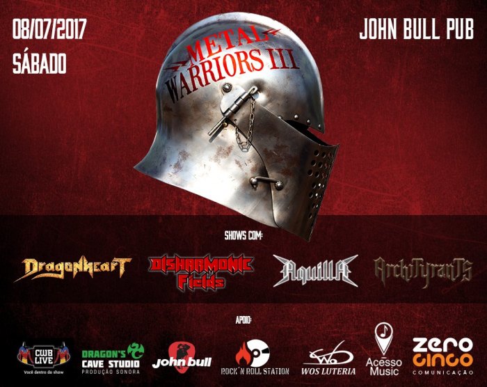 METAL WARRIORS – Show com AQUILLA, ARCHITYRANTS, DISHARMONIC FIELDS & DRAGONHEART + Tributo a Dio com Evilution