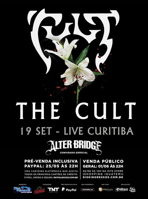 Dois grandes nomes se encontram em Curitiba no dia 19 de setembro. Com realização conjunta da Hits Entretenimento e Like Entretenimento, a banda de metal rock alternativo Alter Bridge e o lendário The Cult dividem o palco na Live Curitiba, o antigo Curitiba Master Hall.