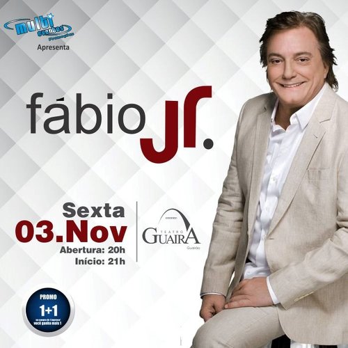 Na estrada por todo o Brasil com a turnê “O Que Importa é a Gente Ser Feliz” (desde 2014!), o cantor romântico Fábio Jr. retorna a Curitiba para única apresentação, dia 3 de novembro, às 21h, no Guairão. Ele já havia se apresentado na cidade este ano, em março. O repertório do espetáculo foi escolhido pelos fãs, através de uma enquete que Fábio Júnior realizou em suas redes sociais. Estão no set list grandes sucessos como “Só Você”, “O Que Que Há”, “Alma Gêmea” e “Caça e Caçador”. Também farão parte do show canções do último álbum do cantor, como “Tô Investindo Nessa História”, “Amem Amor” e “Será Que Fui Claro?!”.