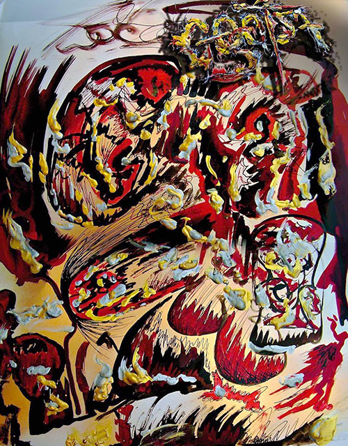 Drannath: Temos intenção de fazer uma exposição com todas as obras de artes plásticas em geral. [Elas] envolvem várias técnicas, desde pintura a óleo, nanquim, que eu adoro. Nós temos um livro de poesias que complementa o álbum, chamado O Sol tá Maior I, ele é todo ilustrado, e tem toda uma linguagem mais literária, não é só a questão da letra da música escrita num livro, tem uma estrutura bem mais densa. Ele está pronto para lançamento. E também a gente tem história em quadrinhos com letra de música, que está programada para o ano que vem. Mas já tem a história em quadrinhos toda ilustrada e pronta, esta já tá impressa, pronta para o consumo do público. A questão da exposição a gente também tá batalhando para colocar na rua. Como a produção é muito grande, e acaba faltando tempo para desenrolar as coisas todas… a gente tá no foco da música nesse momento, pois estamos gravando o O Sol tá Maior III. Faz um ano que lançamos O Sol tá Maior II. E o O Sol tá Maior I já está pronto e gravado desde 2011, mas vai o último a ser lançado oficialmente. É muita coisa rolando ao mesmo tempo, e é tudo uma linguagem só, no sentido de uma complementar a outra, embora funcionem de maneira independente. Creio que só ano que vem vamos conseguir colocar essa exposição ao público.