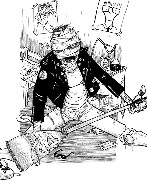 O mundo conheceu o lado pintor de Dee Dee Ramone em uma exposição póstuma na galeria Fairey, a Subliminal Projects, em 2012. Kurt Cobain assinou a ilustração do álbum “Incesticide”, lançado em 1992, além de criar o icônico “smile chapado” que até hoje caracteriza o Nirvana. Don Bolles, baterista do The Germs, criou a marca da banda inspirada em uma queimadura de cigarro… Ao que parece, o namoro entre a música underground e as artes visuais gerou muitos filhos espalhados pelo mundo, muitos inclusive se manifestando aqui, entre os pinheirais da capital paranaense.