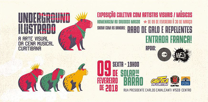 Prova disso é a exposição “Underground Ilustrado”, que vai reunir, entre os dias 9 de fevereiro e 30 de março, os trabalhos de 17 músicos/ilustradores (ou ilustradores/músicos) no Solar do Barão, com entrada franca.