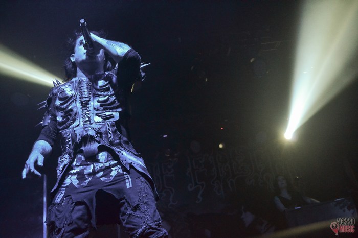 Being in Brazil for the fourth time (previously, they had come in 2004, 2010 and 2013), they’ve presented theirselves at Carioca Club, which received a good crowd for the occasion. They got the opportunity to check over a repertory that embraced the higher points of the band’s career, barely irreproachable and a pleasent concert lenght: 1h40min. In an Extreme Metal show, that is not a very common thing. With the intro “Ave Satani”, the musicians, one by one, got up on stage, without flauts, wave to the public and take their places. The last to show up is Dani Filth, with a fussy look, as always, jumping up like Ozzy Osbourne; a very curious situation. Then, they start up “Gilded Cunt”, a blast that opens the album Nymphetamine (2004). Coming back in time even more, “Beneath the Howling Stars” came right from the classic Cruelty and the Beast (1998), showing all the sound nuances that became the “trademark” of Cradle of Filth through the years. Earlier, on the press conference, the guitarist Ashok affirmed that the song is one of the best tracks to define the band’s sound.