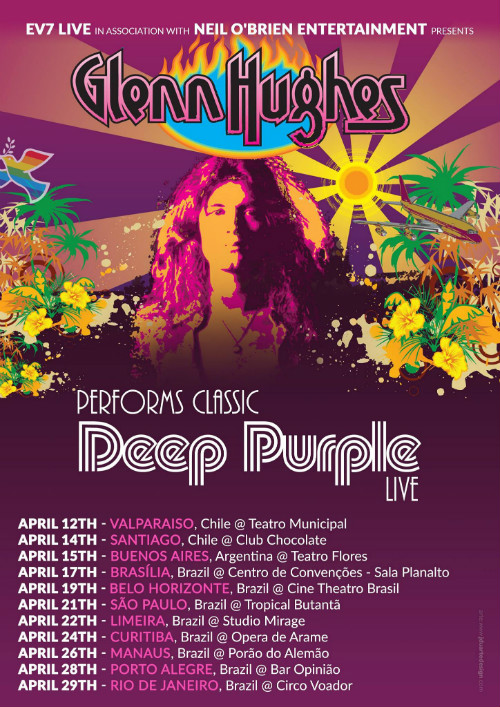 O vocalista e baixista Glenn Hughes chega ao Brasil em meados de abril para uma turnê especial. Pela primeira vez em 40 anos, ele fará shows focados em seus anos de Deep Purple.