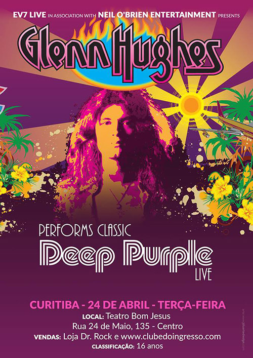A apresentação do lendário cantor e baixista Glenn Hughes em Curitiba, marcada para o dia 24 de abril, sofreu uma alteração de local. Em vez de ser na Ópera de Arame, o show vai rolar no Teatro Bom Jesus.