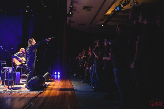 A próxima música escolhida foi um cover do grande Gary Moore, “Out In The Fields” (1985), que por sinal ficou muito bem neste formato. A combinação dos vocais de Kotipelto e Jani é incrível, principalmente durante o refrão, onde percebemos o quanto as duas vozes se completam. Vale salientar que a dupla estudou muito cada música que iria compor o álbum, conseguindo assim produzir um ótimo arranjo para transformá-las em versões acústicas. Na sequência tocam “Shine In The Dark” (2015) do Stratovarius, muito esperada por esta que vos escreve, pois é fã do álbum “Eternal” desde seu lançamento há quase três anos atrás. Kotipelto brinca novamente com a platéia, dizendo que a música a seguir era muito longa e “muito Stratovarius”, seguindo então com “Season of Change” (1996), e na sequência, a incrível “A Million Light Years Away” (2000), relembrando os velhos tempos de sua banda. Ao final da música, um fã da platéia grita “onde está a cerveja?”, e Jani prontamente responde que teatro não era um lugar apropriado para bebidas, mas em seguida ergue seu copo para a platéia, e saúda a todos com um “cheers!” A dupla então toca “I Will Build You a Rome” (2015), única música cover de Cain’s Offering, banda de power metal na qual os dois músicos fazem parte.