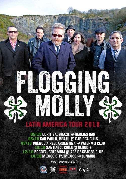 Seis longos anos após apresentação de estreia no Brasil, a Liberation Tour Booking acaba de anunciar oficialmente o retorno do renomado grupo irlandês/norte-americano Flogging Molly à América Latina. Uma das mais influentes e respeitadas bandas do gênero Celtic Punk da história traz a turnê promocional do seu mais novo aclamado álbum “Life is Good” especialmente para duas capitais do país: Curitiba (05/10 – Hermes Bar) e São Paulo (06/10 – Carioca Club).