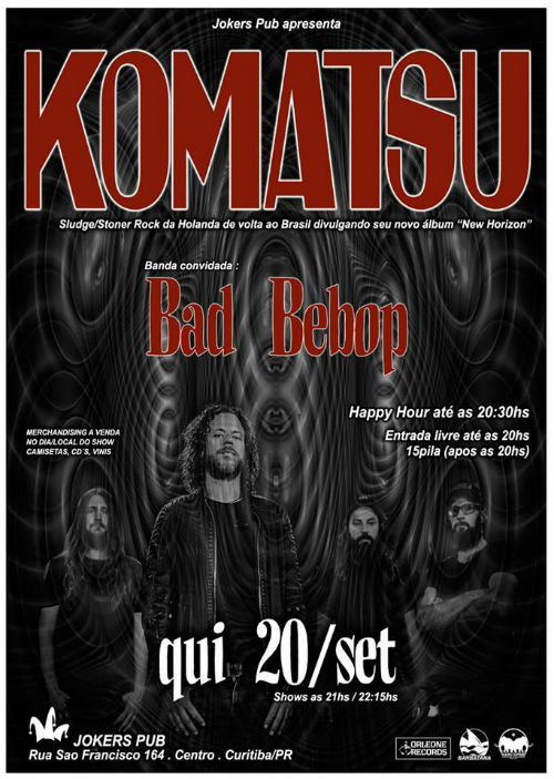 Os holandeses do Komatsu tocaram em Curitiba em 2017 e a galera curtiu! Tanto que os caras estão com retorno marcado. A banda toca no Jokers Pub, no dia 20 de setembro (quinta). A abertura fica por conta do Bad BeBop, banda local que tem um ótimo EP em sua discografia.