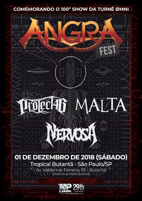 Após o grande sucesso da edição realizada ano passado, a banda Angra confirmou a segunda edição do Angra Fest. O evento vai rolar no Tropical Butantã, dia 01 de dezembro (sábado). As bandas confirmadas são: Angra, Malta, Project46 e Nervosa.