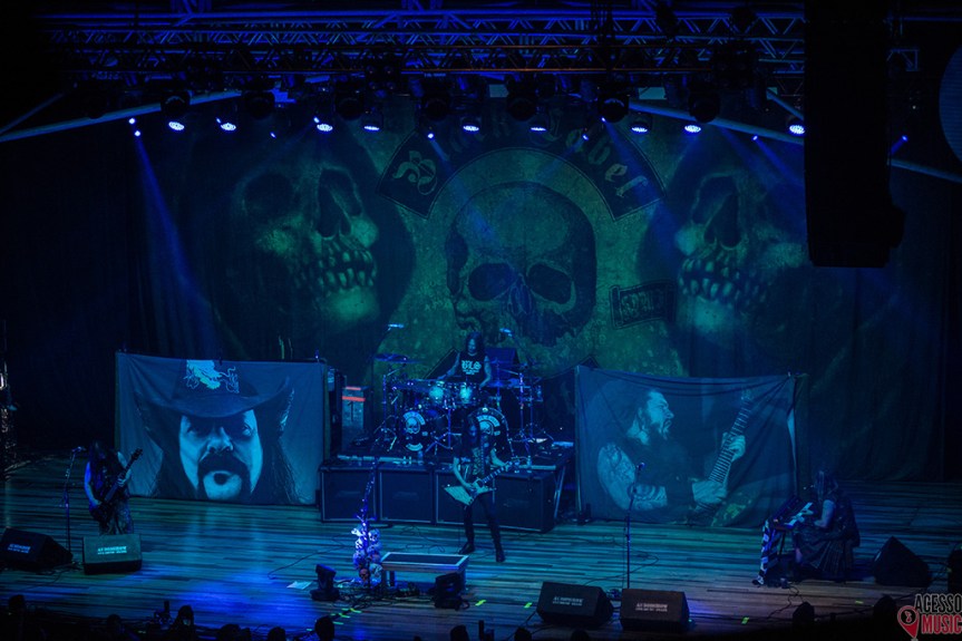 Depois dessa, outras duas contaram com o próprio Zakk nas teclas. Primeiro, “Spoke in the Wheel”, e depois a famosa “In this River”, que contou com uma emocionante homenagem a Dimebag Darrel (que partiu em 2004) e seu irmão Vinnie Paul, que nos deixou no ano passado; ambos tocaram numa das maiores bandas de Metal dos anos 90, o Pantera. Zakk era bastante próximo dos dois. Nas laterais da bateria, ao fundo do palco, foram colocados dois sidedrops (espécie de bandeiras que são colocadas no palco, mais a frente), cada um com a foto de um deles. Tocada em sua versão Metal, “The Blessed Hellride” fez a banda voltar ao peso, em seu formato de palco característico. O final, após mais algumas canções, veio com “Concrete Jungle”, onde Zakk e Dario fizeram um alucinante – e consciente – duelo de guitarra e “Stillborn”, com andamento e arranjos diferenciados, sem dúvidas a música mais famosa do grupo.