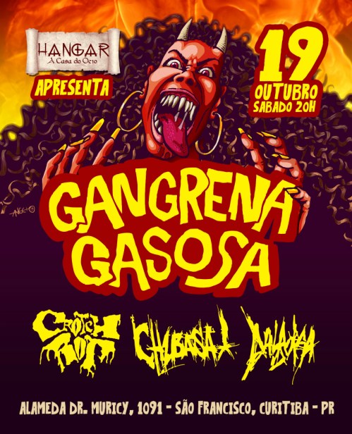 A banda Gangrena Gasosa é única dentro da música pesada brasileira. Desde os primórdios eles primaram por temas totalmente a parte do que predominava na época: saravá, exu, entidades e tudo o mais. Se é para chocar, que seja bem feito. E foi. A banda passou a ser referência em um estilo que ela é a única representante: o Saravá Metal. Seu show é repleto de figurinos e é uma experiência única de ser vivida. O Gangrena Gasosa se apresenta no Hangar – A Casa do Ócio, dia 19 de outubro.
