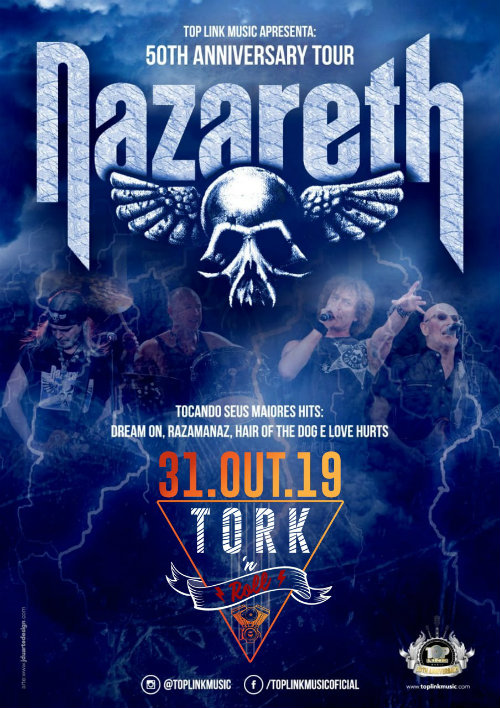 O grupo escocês Nazareth chega ao Brasil no final do mês para uma turnê de 4 datas. Uma das apresentações será em Curitiba, dia 31 de outubro (quinta-feira) no Tork ‘N Roll. O show será da 50th Anniversary Tour, onde vão revisitar sua carreira de cinco décadas, mas deve tocar também alguns sons de seu mais recente disco de estúdio, o ótimo Tattooed on my Brain.