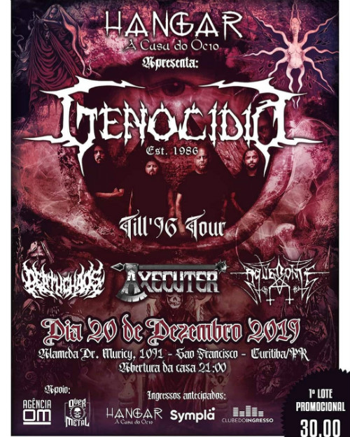 Venda online: https://www.sympla.com.br/evento__717315 / https://www.clubedoingresso.com/evento/genocidioturne-hangar