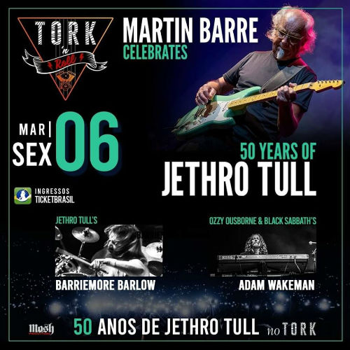 O show Martin Barre celebrates 50 Years of Jethro Tull chega a Curitiba no dia 06 de março, no palco do Tork N’ Roll. O show é liderado pelo guitarrista Martin Barre, que foi responsável pela criação da massa sonora nas composições da banda ao lado de Ian Anderson e seus outros colegas de banda. Ele esteve no Jethro Tull desde 1969, por mais de 40 anos.