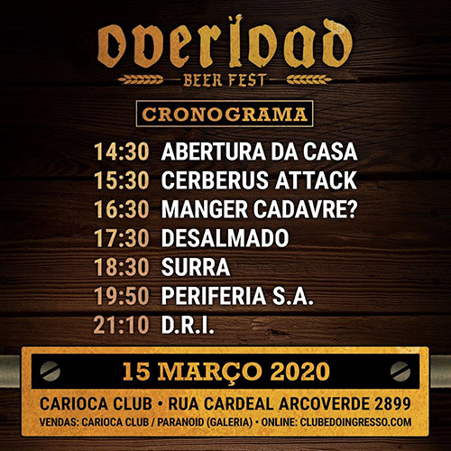 Venda online: www.clubedoingresso.com/evento/overloadbeerfest2020