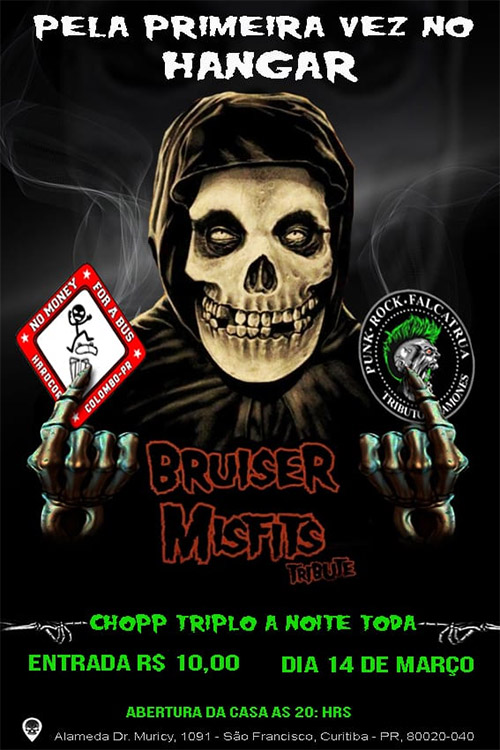 No sábado (14), o Hangar – A Casa do Ócio, um dos mais importantes espaços culturais da cidade, recebe pela primeira vez em seu palco a banda Bruiser Misfits Cover, que tocará todos os grandes sucessos da banda de Jerry Only e Glenn Danzig.