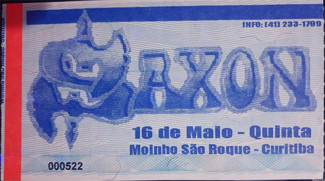 O dia 16 de maio é lembrado tristemente pelos amantes de Heavy Metal, afinal, em 2010 o grande cantor Ronnie James Dio faleceu, exatamente um ano após seu último show no Brasil, país que tanto visito durante sua carreira. Mas o mesmo 16 de maio pode ser lembrado com carinho, ao menos pelos headbangers de Curitiba. Afinal, nessa data, porém em 2002, o quinteto britânico Saxon aportou pela primeira vez na capital paranaense. Justamente na semana que esse show completaria 18 anos, encontrei meus manuscritos daquela noite, que ficaram perdidos esse tempo todo. Então confeccionei uma resenha detalhada baseada nessas observações de um fã de Heavy Metal de 17 anos.