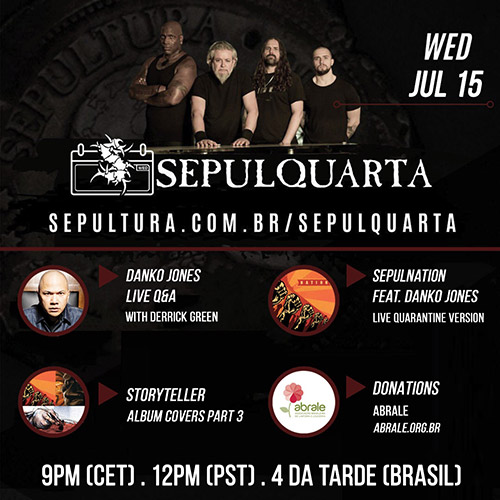 Em mais uma tradicional SepulQuarta, dia 15 de julho, o Sepultura convida para a live Q&A o vocalista e guitarrista canadense Danko Jones. A transmissão será ao vivo a partir das 16h15 (horário de Brasília), no canal do youtube da banda. “Nós conhecemos o Danko Jones em uma turnê europeia que fizemos juntos em 2003, foi ali que a nossa amizade começou. Eu já era fã da banda antes do início da, então foi um grande prazer dividir o palco com uma potência tão extrema. Nossa amizade com nosso irmão continuou até hoje. Estou definitivamente ansioso para conversar e saber sobre o que está acontecendo!”, comenta o vocalista Derrick Green, que comandará a conversa.
