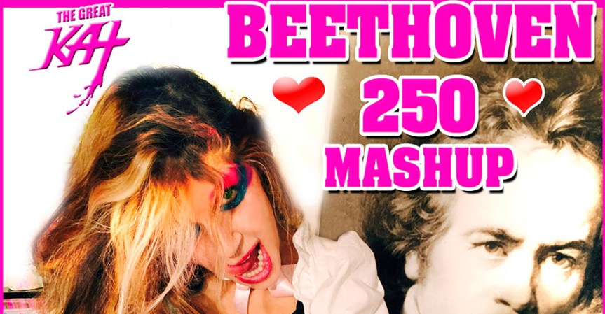 Se Beethoven revolucionou a música em sua época, seu legado e seu espírito hoje vivem no corpo de uma mulher, a guitarrista The Great Kat, que mistura música clássica e o shredding com muita excentricidade. Todo ano ela coloca no mercado uma quantidade inacreditável de lançamentos, e um deles foi feito para celebrar os 250 anos do nascimento do lendário compositor alemão: Beethoven 250 Mashup.