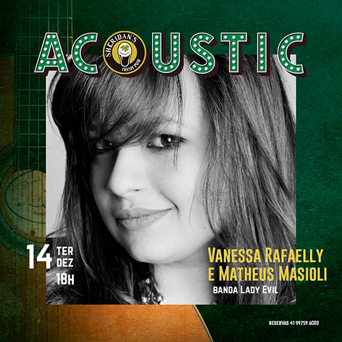 A cantora Vanessa Rafaelly e o pianista Matheus Masioli se apresentam na terça-feira (14) no palco do Sheridan’s Irish Pub, um dos mais conceituados espaços para música ao vivo de Curitiba. A entrada custa R$ 10 e reservas podem ser feitas antecipadamente via whatsapp.
