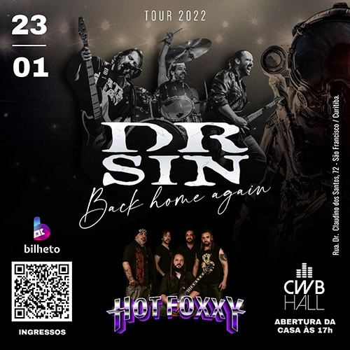 O CWB Hall retoma as atividades após dois anos com um grande evento: a conceituada banda paulista de hard rock Dr. Sin sobe ao palco da casa no dia 23 de janeiro, domingo, para uma apresentação especial. A abertura fica com a banda local Hot Foxxy, que fará a estreia do single “Living For Today”.
