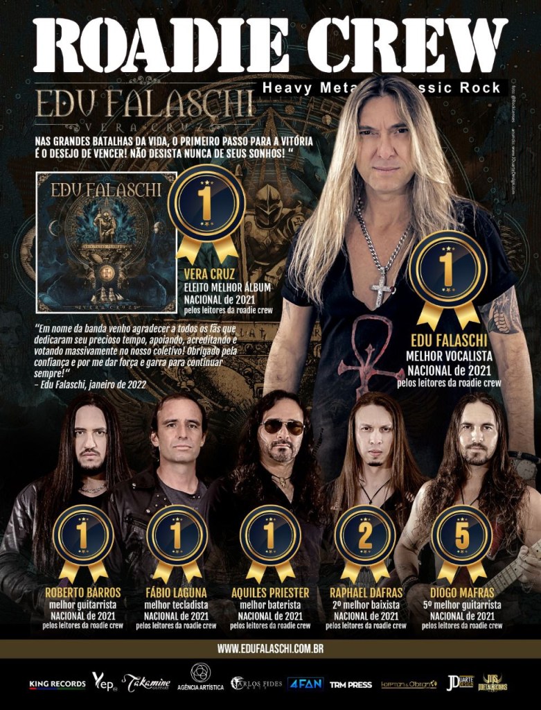 “Gostaria de agradecer em nome da banda a todas as pessoas que nos apoiam e que votaram na enquete dos melhores de 2021 da maior revista de heavy metal da América Latina. Vocês nos presentearam com o 1° lugar nas categorias. Trabalhamos duro, com seriedade e profissionalismo para entregar a todos nosso melhor. Vera Cruz foi um lançamento muito importante em minha vida profissional e garanto a vocês que meus trabalhos futuros terão ainda mais investimento e dedicação. Nos veremos em breve na turnê que será anunciada em breve!”, disse Edu Falaschi.