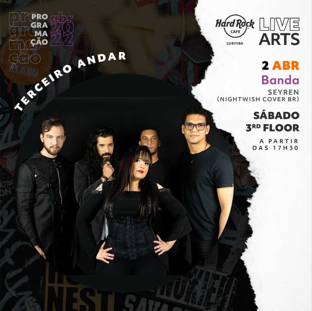 A banda Seyren, tributo ao grupo finlandês Nightwish, realiza uma apresentação especial no dia 02 de abril (sábado), no palco do terceiro andar do lendário Hard Rock Cafe Curitiba.