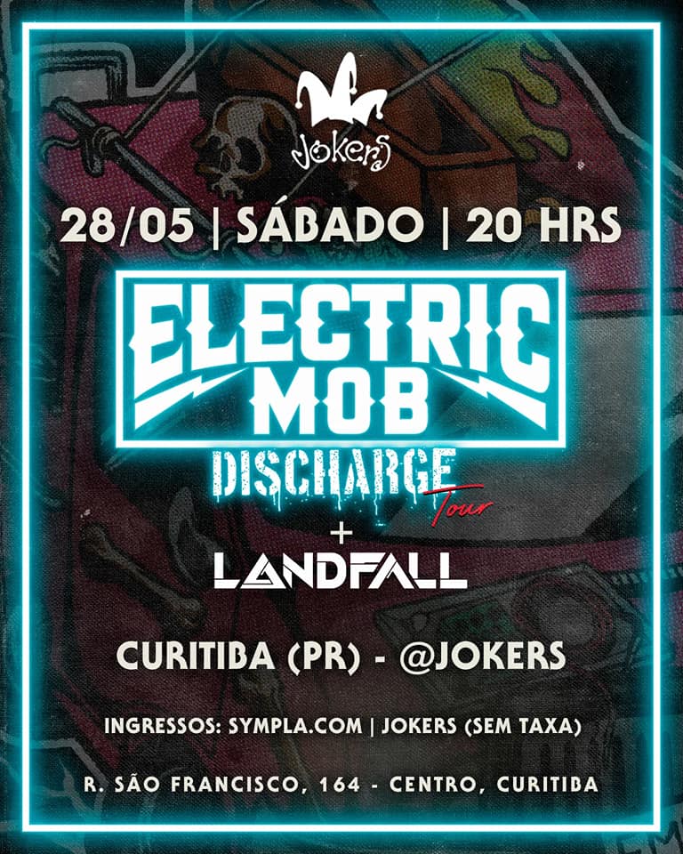 O Hard Rock é o estilo que estará no palco do Jokers, no dia 28 de Maio (sábado), em Curitiba. Encerrando a turnê do aclamado álbum de estreia, Discharge, a banda Electric Mob se apresenta em sua cidade natal após uma divulgação de sucesso. Para a abertura, a Landfall, que lançou o álbum The Turning Point em 2020 e se apresenta ao vivo para apresentá-lo ao público.