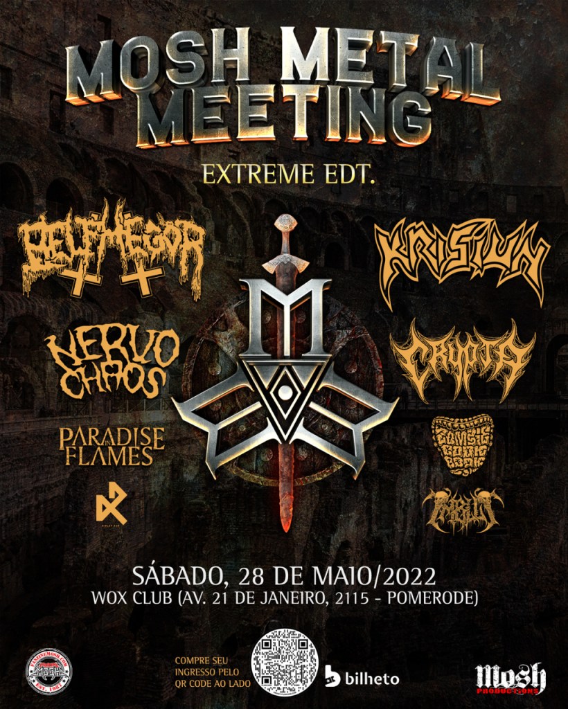Além de Belphegor, Crypta, Krisiun e Nervochaos, o Mosh Metal Meeting contará com os mineiros da Paradise in Flames, recém retornados de uma turnê europeia e a banda catarinense Zombie Cookbook. Os ingressos para o evento, assim como promoções, excursão e kits, estão à venda pela plataforma Bilheto. As apresentações acontecem na conceituada Wox Club, o principal espaço para shows de Pomerode.