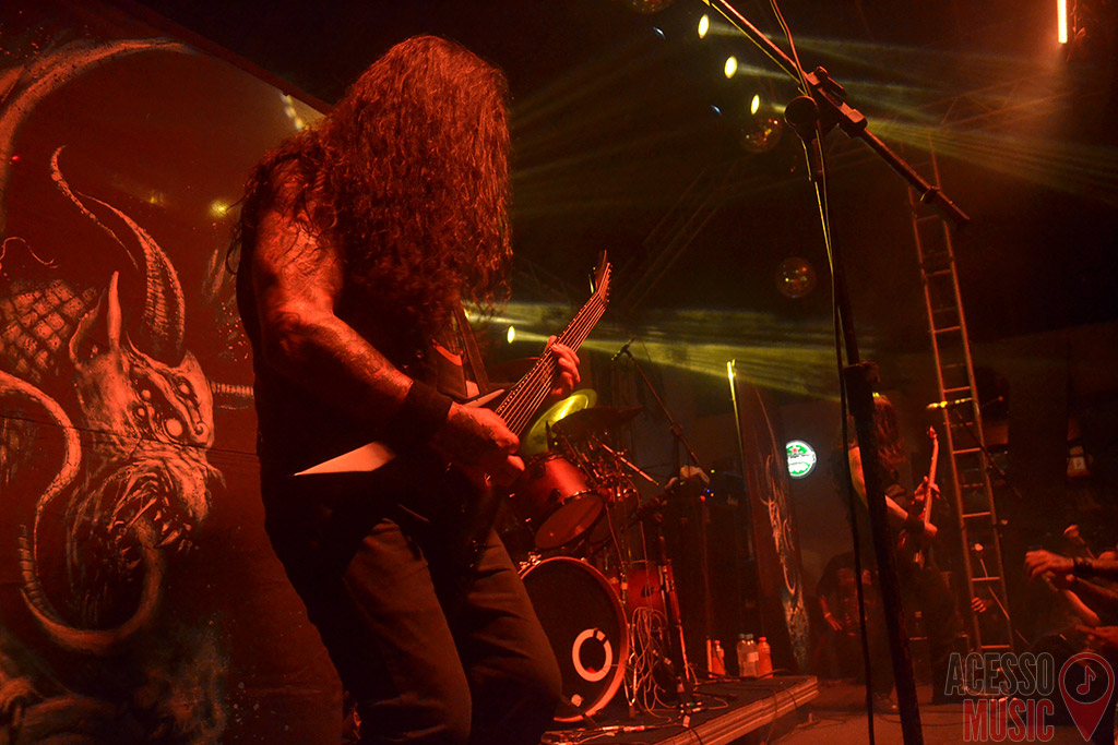 São dez álbuns de estúdio em pouco mais de 25 de estrada. A trajetória do Nervochaos é de persistência e garra, pois mesmo com os percalços inerentes ao nosso amado estilo, o grupo nunca se deixou abalar. Eu venho acompanhando shows deles há cerca de duas décadas, e os vi com diversas formações diferentes. De todas, a atual é a mais sólida e coesa, sem sombra de dúvidas. A adição do exímio Woesley, por exemplo, trouxe um refinamento nos solos. E este é apenas um dos fatores. Nos vocais, Stone brutalizou, com um timbre potente e boa presença de palco. O mais recente registro deles é All Colors Of Darkness, que saiu este ano, poucos meses depois do álbum de regravações Dug Up… Diabolical Reincarnations. O grande destaque foi a já clássica “Pazuzu is Here”, além de “For Passion Not Fashion “ e “Dragged in Hell”, com suas partes velozes em contraponto a momentos mais tensos.