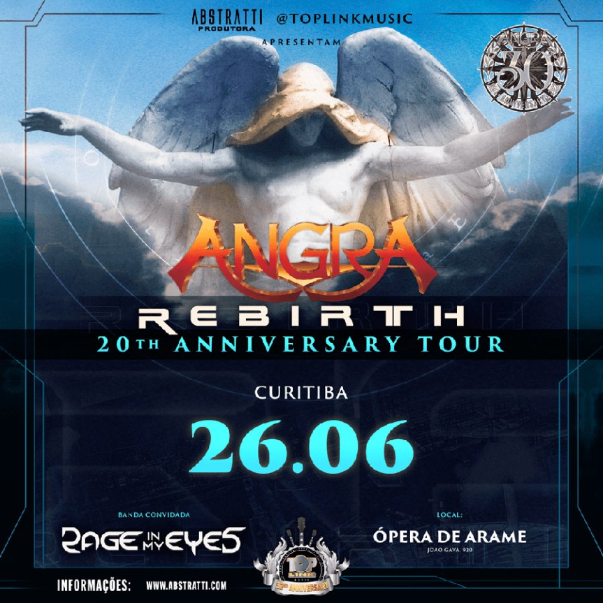 Para celebrar as duas décadas do disco Rebirth, um grande marco na carreira da banda, o Angra passa por Curitiba com no dia 26 de junho (domingo), na Opera de Arame, um dos melhores e mais bonitos espaços para shows na cidade. Apesar da grande procura dos fãs pela apresentação, há ingressos disponíveis para todos os setores, com o adendo de um novo lote especial para o setor plateia.