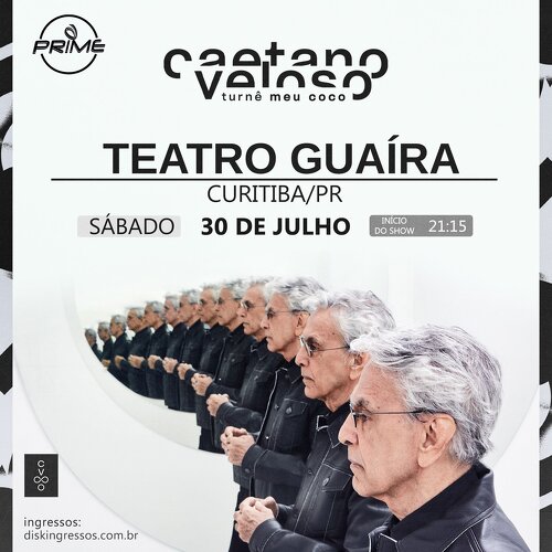 Venda online: https://www.diskingressos.com.br/evento/3175/30-07-2022/pr/curitiba/caetano-veloso