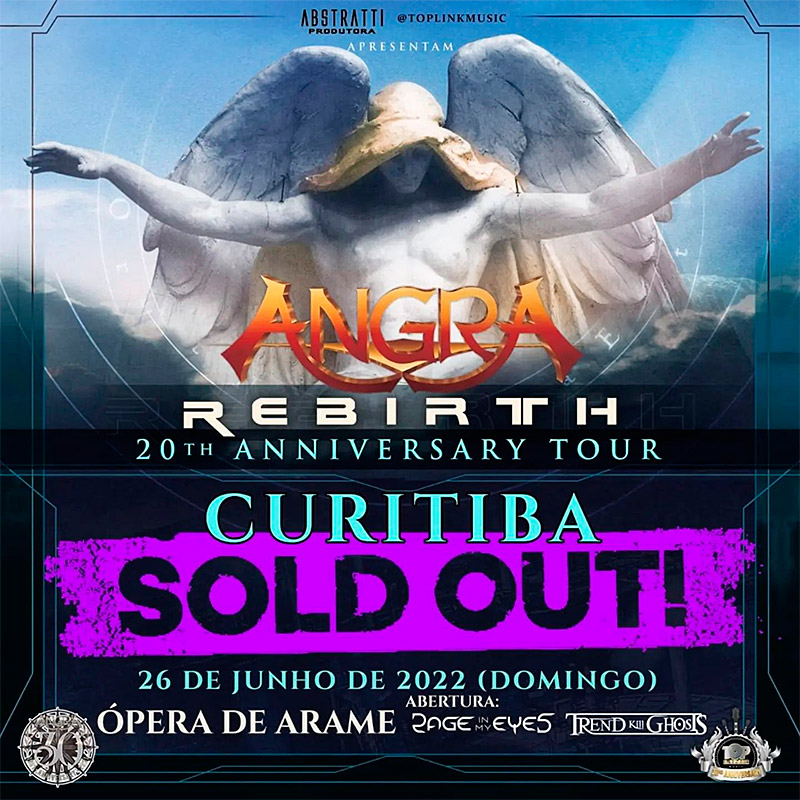 Para celebrar as duas décadas do disco Rebirth, um dos maiores sucessos de sua carreira, a banda Angra realiza a Rebirth 20th Anniversary, que tem uma parada em Curitiba neste domingo, 26 de junho, na Ópera de Arame, um dos melhores e mais bonitos espaços para shows na cidade. O grande sucesso da atual turnê fica comprovado pelo fato de todos os ingressos terem sido vendidos.