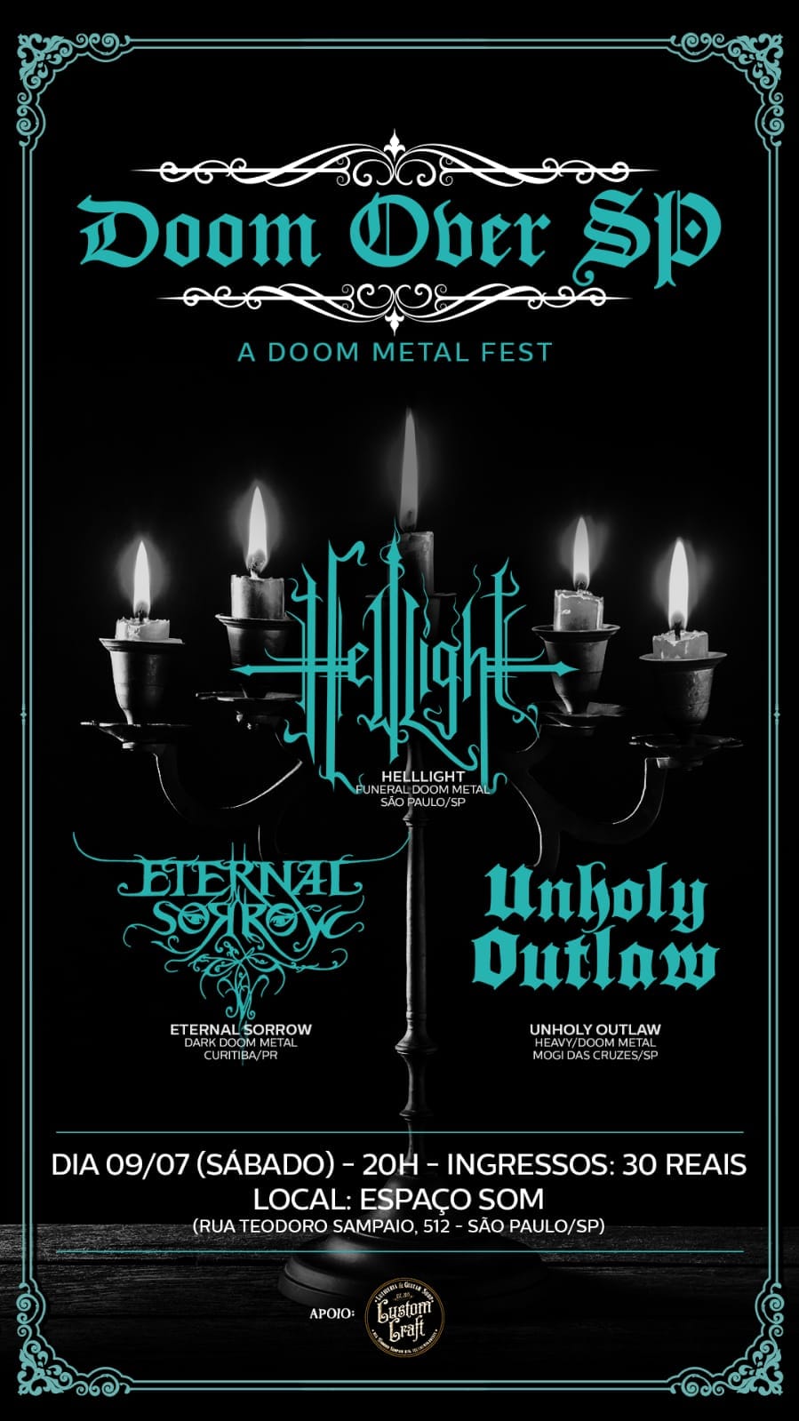 De São Paulo, o HellLight já dividiu o palco com o gigante Candlemass e divulga o mais recente álbum, Until the Silence Embraces, de 2021. Completa o cast o Unholy Outlaw, de Mogi das Cruzes, interior de São Paulo. A banda tem dois álbuns, sendo o mais recente Kingdom of Lost Souls, de 2019. Será uma noite tétrica de música fúnebre.