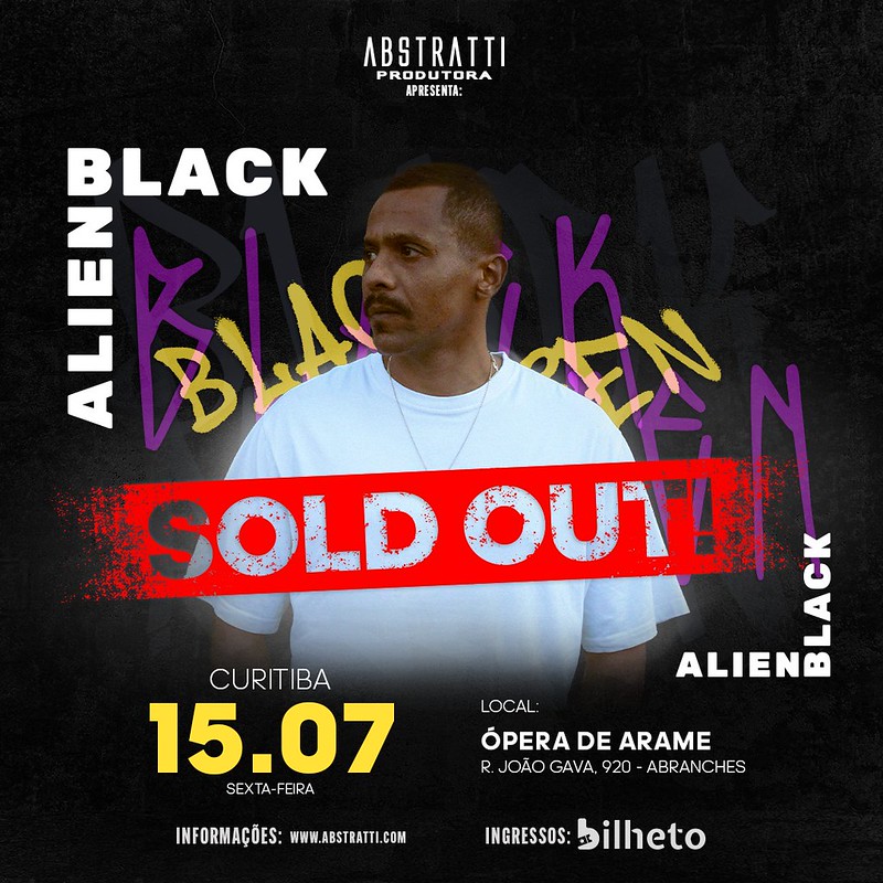 O rapper Black Alien, sucesso de crítica e público, seja como integrante do lendário Planet Hemp ou como artista solo, realiza esta semana única apresentação em Curitiba dia 15 de julho, no palco da Ópera de Arame. A apresentação de um dos baluartes da música nacional na capital paranaense, uma realização da Abstratti Produtora, está com ingressos esgotados.