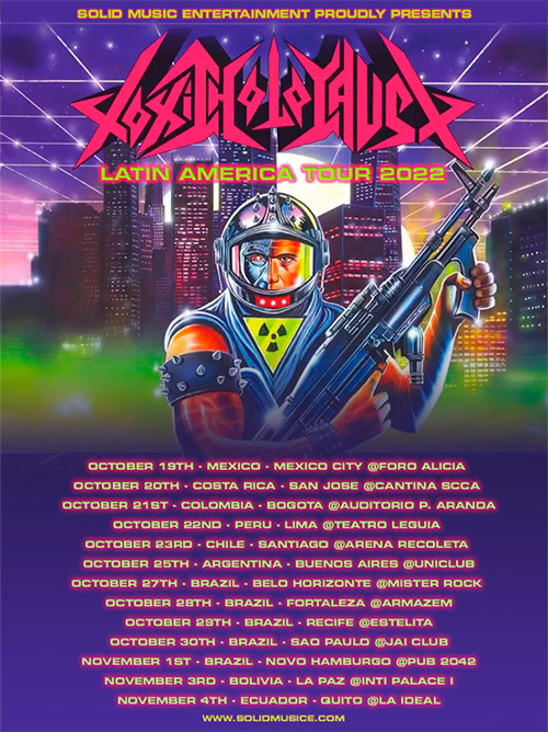 Em outubro, os americano representantes do thrash metal Toxic Holocaust desembarcam na América Latina para uma tour por nove países, totalizando 13 shows, sendo cinco no Brasil. A banda divulga o álbum Primal Future: 2019, o sexto da carreira de mais de duas décadas do grupo liderado pelo vocalista e guitarrista Joel Grind. Confira as datas: