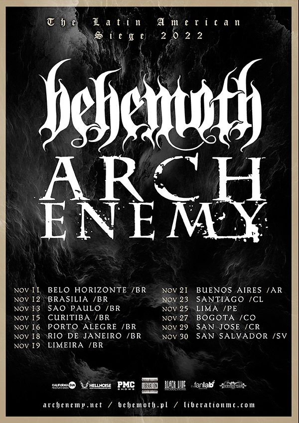 Duas das mais reverenciadas bandas do metal mundial se aliaram para realizar a turnê mais brutal e avassaladora que cruzou os Estados Unidos a Europa em 2022: Behemoth, da Polônia, e Arch Enemy, da Suécia. Com enorme satisfação, a Liberation Music Company trará a tour à América do Sul em novembro deste ano: The Latin American Siege Tour 2022!