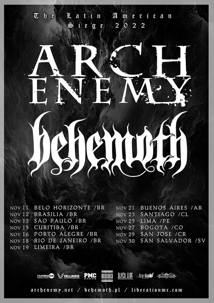 Duas das mais aclamadas bandas de metal da atualidade estão em turnê juntas há meses, e esta parceria chega ao Brasil agora em novembro. A partir de hoje, Arch Enemy e Behemoth realizam uma série de shows no país, começando em Belo Horizonte. A The Latin American Siege Tour 2022 chega ao nosso continente pela Liberation Music Company.