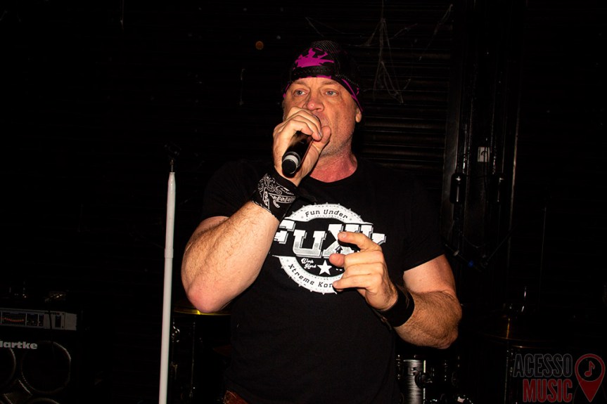 A festa rolou no You Rock, um bar de médio porte, ideal para uma apresentação desta dimensão. O foco desta matéria é o show de Rachelle, então vamos lá: às 23h30, o vocalista surgiu no meio da galera, assumiu seu posto e abriu com “God Bless this Mess” e seu irresistível refrão. Das dez músicas da parte convencional do show, nove foram do Tuff. Assim sendo, na sequência conferimos “In Dogs We Trust”. Ambas são do álbum Fist First (1994).