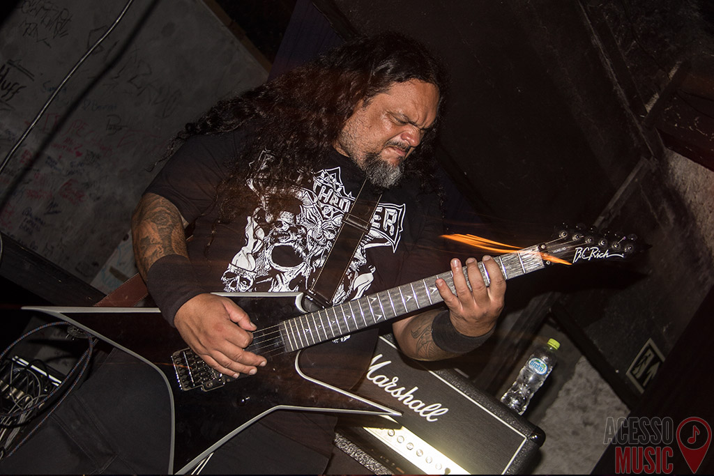 O Necroterio, lenda do death/grindcore curitibano, mandou um show um pouco mais curto que o normal, e dividiu de maneira igual as músicas de seus três álbuns. O pessoal mais das antigas vibrou com “Dying Inside of Death”, um dos sons mais fodidos de todos os tempos, o clássico supremo “Gory Days” e “Survive With Our Flesh”, que há milênios não era tocada ao vivo. Estas são do debut Lament of Flesh (1999). Do segundo disco, A Rotten Pile of Dead Humans (2002), “Tears, Anguish and Pain”, “Elemental” e “Handcuffs”, todas essenciais em qualquer show do Necroterio. Das do último CD, Gory Visions and Hallucinations (que logo completa oito anos!), “Servant of Killing”, “Splattered Heads” e “El Carnicero (Obsesión por la Sangre)”, justamente as mais pútridas do disco. Duas covers completaram o baile: “Human Target”, do Six Feet Under e “División del Norte”, do Brujeria. Eu, particularmente, adoraria ter ouvido “Creation” ou “Ages of Fear” no lugar destas duas, mas o negócio foi uma festa regada a brutalidade, então, todos saíram ganhando.