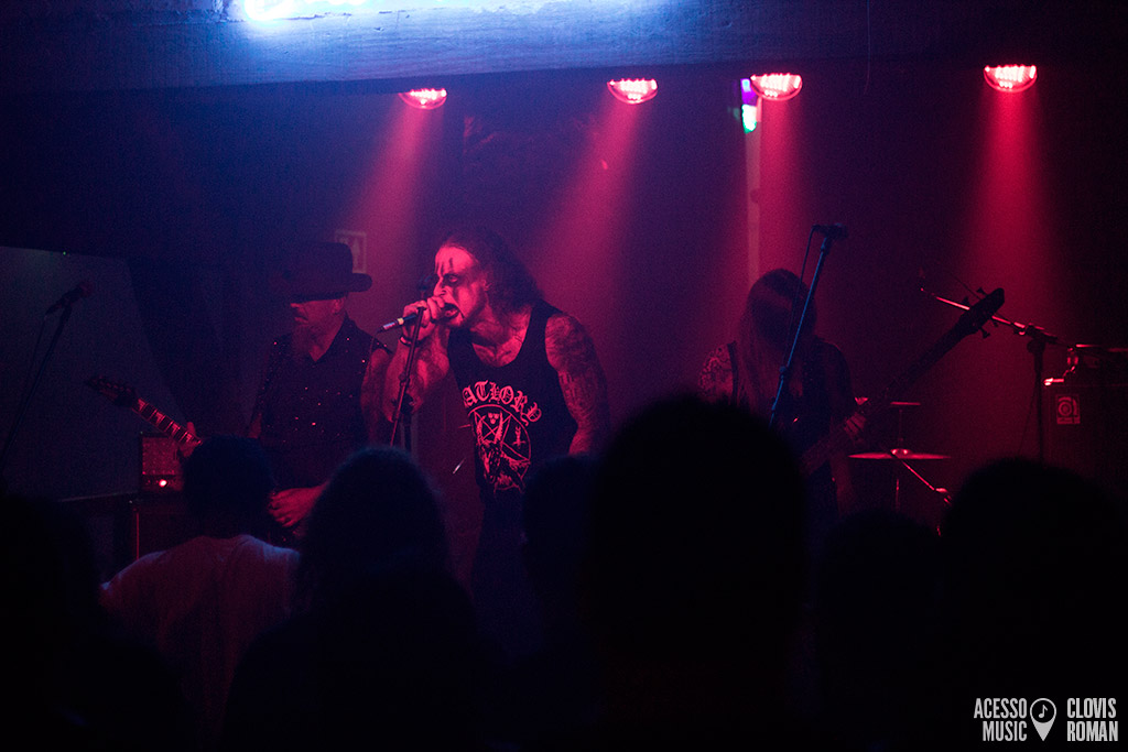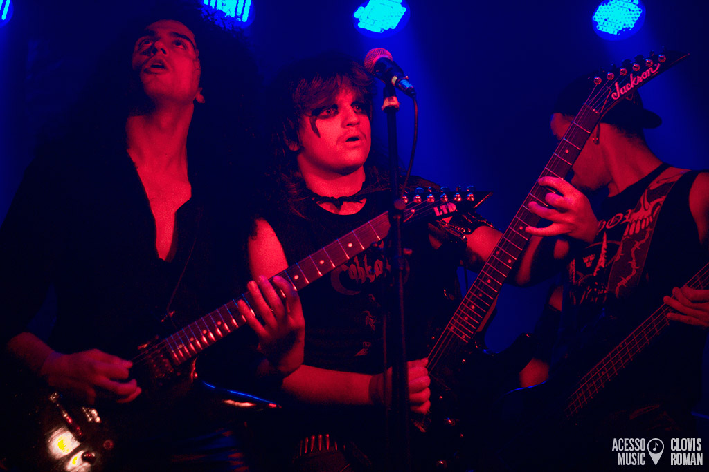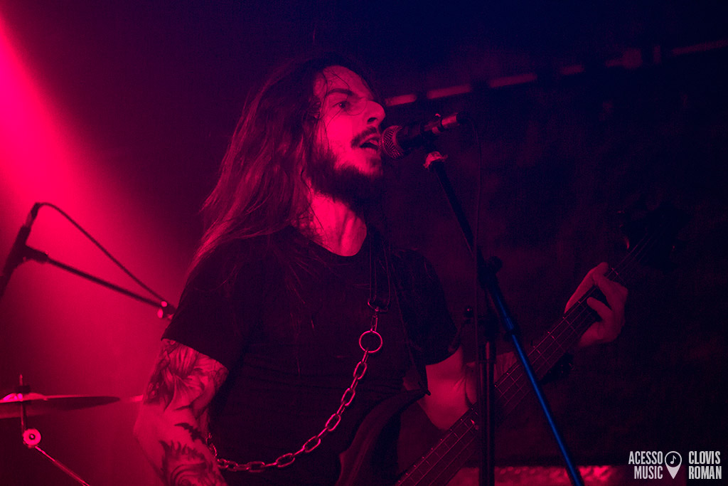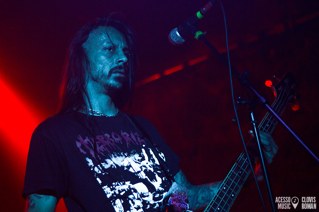 A iluminação diminuiu consideravelmente quando o Podridão começou seu set. Na penumbra, o trio paulista desandou em tocar músicas brutais, calcadas no death metal. O grupo de Itaquaquecetuba tem dois álbuns lançados, Podridão (2017) e Revering the Unearthed Corpse (2020). As músicas são curtas, com letras sobre morte, sangue e anti-religião, o que é sempre bem-vindo neste cenário. Durante o set, se destacou a fúria da banda no palco e o estilo rústico do baterista Repugnant Fat. Eu já tinha visto um show dos caras ano passado, em Poá/SP, mas o som magro naquele evento depôs contra. Aqui, com um equipamento mais robusto e técnico de som experiente, a massa sonora do Podridão soou ainda mais podre (no bom sentido).