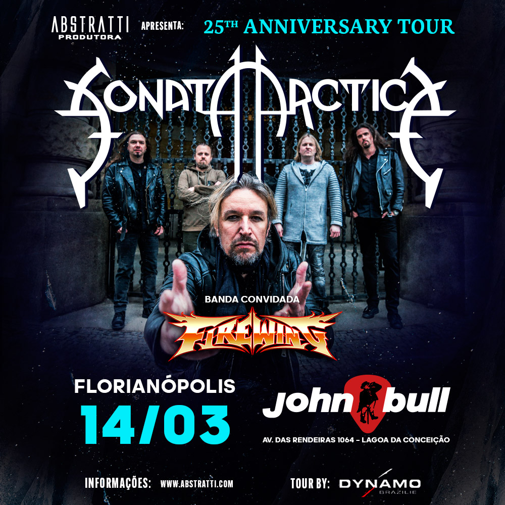 O show da banda finlandesa Sonata Arctica – um dos ícones máximos do boom do metal melódico do final dos anos 1990 – em Florianópolis, acontece no dia 14 de março (terça-feira), às 21h no John Bull Pub. O show faz parte da 25th Anniversary Tour, na qual o Sonata Arctica apresentará um repertório especial com os grandes clássicos da carreira.