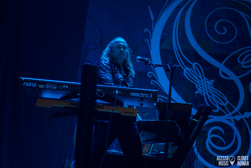 Às 21 horas em ponto, o grupo formado por Joakim Svalberg (teclado), Martín Méndez (baixo), o monstruoso Fredrik Åkesson (guitarra), o novato Waltteri Väyrynen (bateria) e o chefão e único membro original, Mikael Åkerfeldt (guitarra e vocal) sobe ao palco do Terra SP, sob ovação geral, com uma breve e delicada intro que logo se transforma em uma pancada de respeito. Trata-se de “Ghost of Perdition”, um dos highlights de Ghost Reveries, um dos tantos álbuns brilhantes da discografia do Opeth.