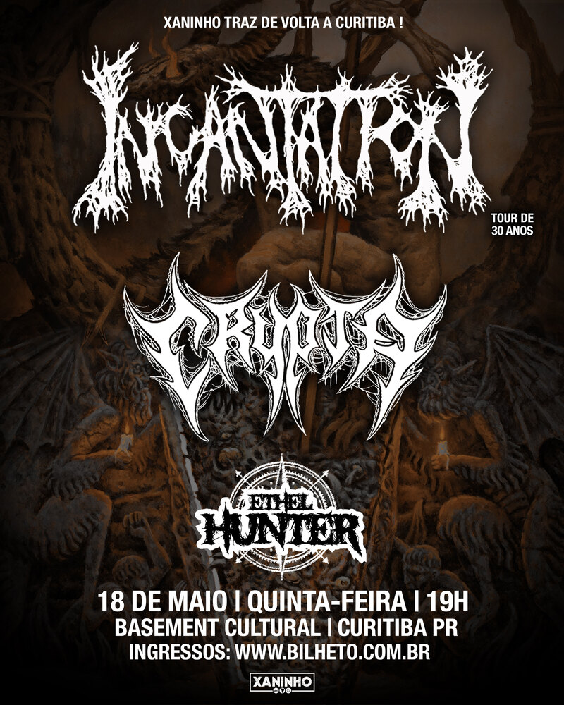 Curitiba recebe a celebração de trinta anos de uma das grandes lendas do death metal mundial, o Incantation, no dia 18 de maio (quinta-feira), no Basement Cultural. O grupo americano é responsável por álbuns fundamentais do estilo, como Onward to Golgotha, Upon the Throne of Apocalypse e Diabolical Conquest.