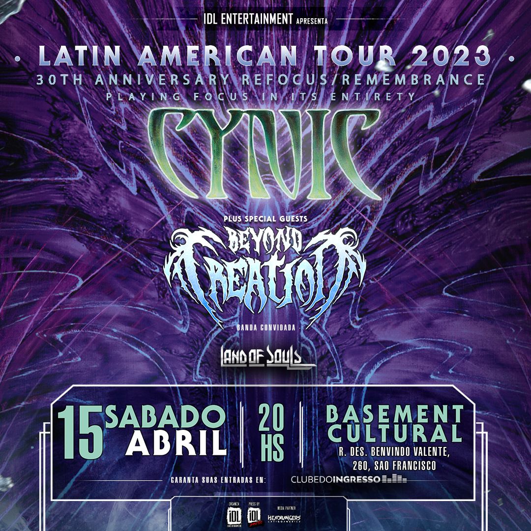 Dois nomes importantes do death metal, oriundos de épocas distintas, chegam à América Latina no mês de abril para uma série de shows. Cynic e Beyond Creation 12 datas em 10 diferentes países, começando pelo Brasil. A segunda data acontece em 15 de abril (sábado), em Curitiba.