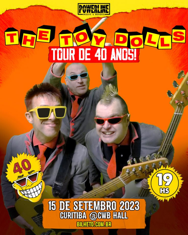 Reconhecida mundialmente há mais de quatro décadas como uma banda de letras bem-humoradas, não raramente em tom de deboche, e com um dos instrumentais mais enérgicos do cenário punk rock, o The Toy Dolls está de volta ao Brasil em setembro de 2023 com a turnê que celebra 40 anos de história. Serão quatro apresentações, com realização da Powerline Music & Books, a mesma produtora que promoveu o giro do trio em 2018: Porto Alegre (13/09, Bar Opinião), Curitiba (15/09, CWB Hall), São Paulo (16/09, Carioca Club) e Rio de Janeiro (17/09, Agyto).