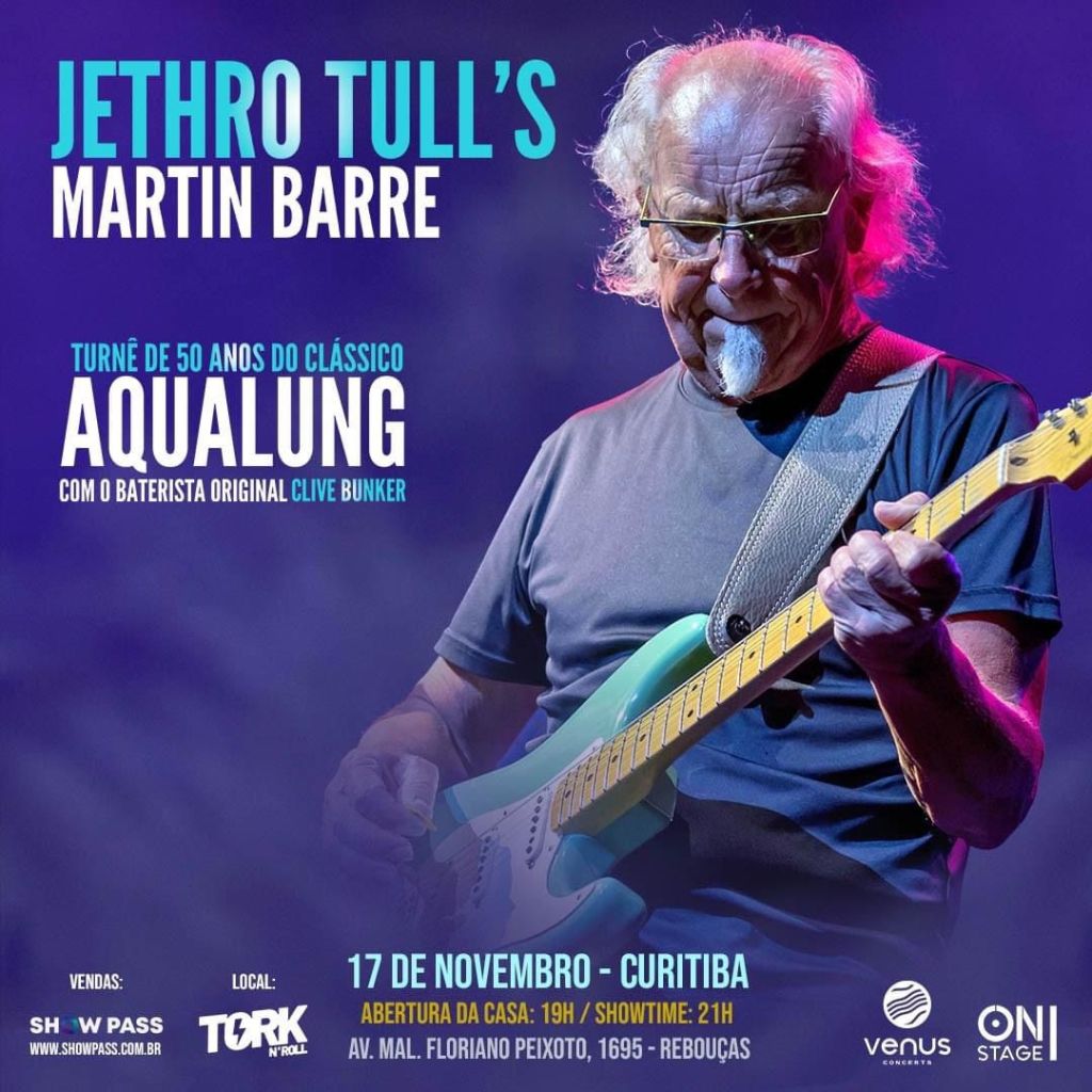 Membro do Jethro Tull por quase 40 anos, Martin Barre retorna ao Brasil com um show especial que celebra o clássico Aqualung, um dos mais icônicos discos daquele grupo. Junto a ele, está outro integrante da formação clássica: o baterista Clive Bunker, que esteve na formação do grupo, em 1967, até 1971. Inclusive, justamente o último disco que ele registrou com o grupo foi Aqualung.