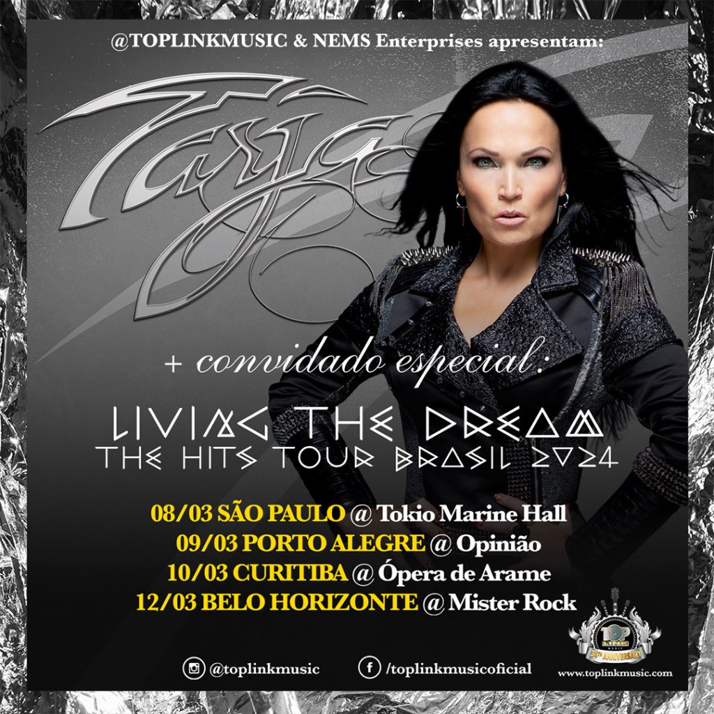 A cantora Tarja volta ao Brasil em março de 2024, para mais uma etapa da Living The Dream – The Hits Tour, que acabou de passar pelo país com shows lotados. Para as datas do próximo ano, ela contará com um convidado especial que será revelado mais a frente.