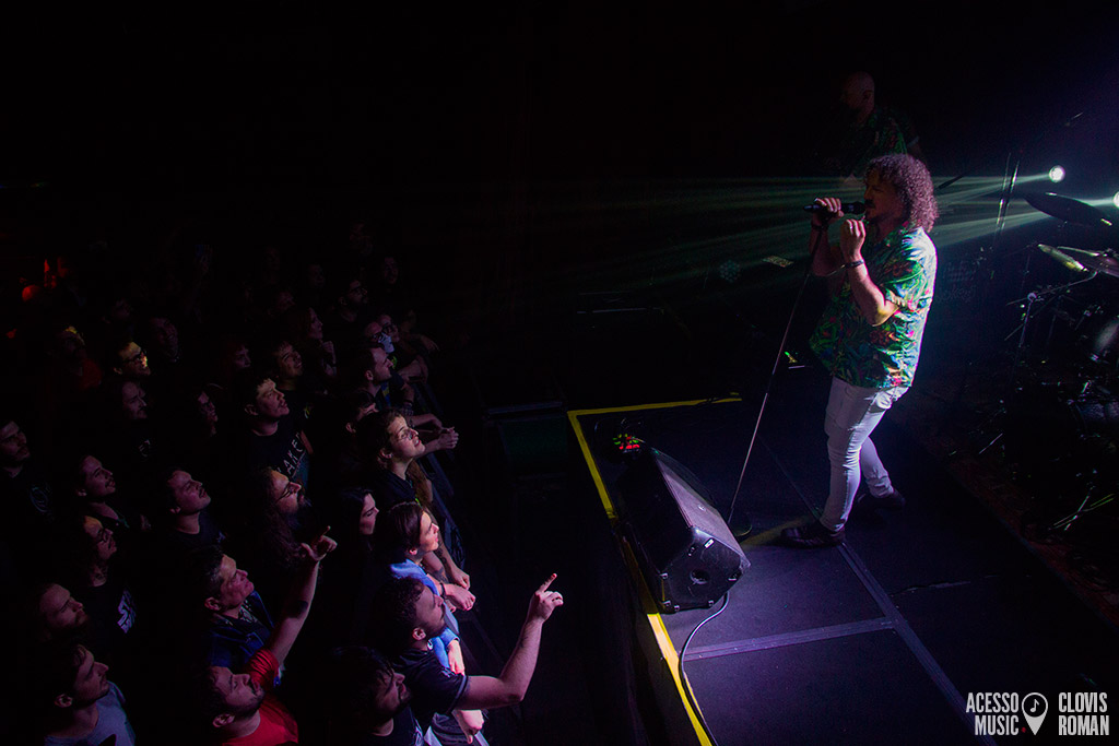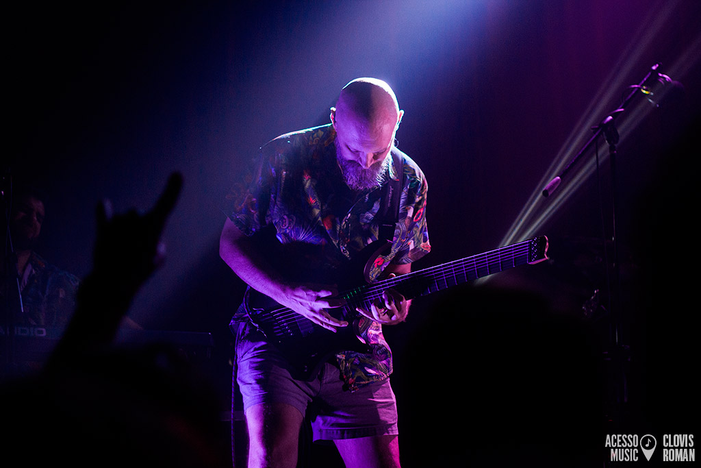 Nesses quatro anos, muita coisa mudou. A diferença principal, e louvável, foi a extensão do repertório apresentado. Se outrora, foram 10 músicas, em Curitiba foram 16, contemplando cinco dos sete discos lançados; ficaram de fora Visions (2011) e o supracitado Vector (2018). Com pontualidade britânica (nada mais justo, afinal, são ingleses), às 20h o Haken se posiciona em cena e inicia com “Taurus”, do mais recente Fauna, que saiu em março e traz algo de mais acessível no som, sem perder as características proeminentes de seu som. Nesse momento foi possível constatar que seria uma noite histórica, afinal, o público reagiu ruidosamente e cantou junto, o que se repetiu em praticamente toda a apresentação, e principalmente em “Cockroach King”, que veio logo no começo do set e destilou suas nuances progressivas marcantes e os vocais primorosos de Ross Jennings, que, em comparação a versão do álbum The Mountain, cantou menos como Jon Anderson e mais como Ed Kowalczyk. “Lovebites” foi outro momento sublime, dentro de um repertório bastante homogêneo.